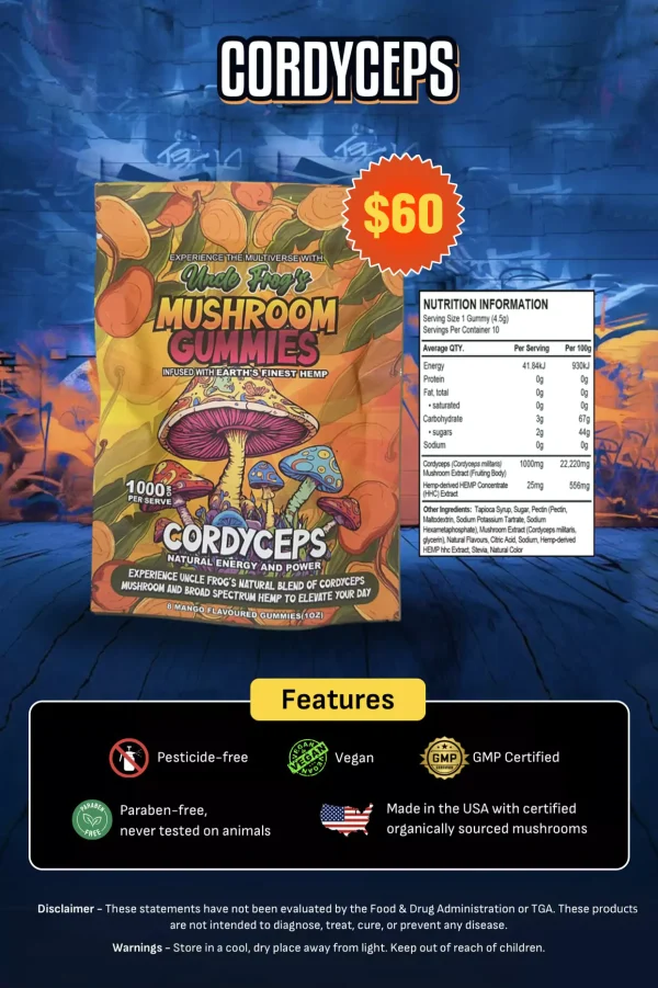 Ignite your energy levels with Uncle Frog’s Cordyceps Energy Boost Gummies for sustained vitality throughout the day! uncle frogs gummies for sale